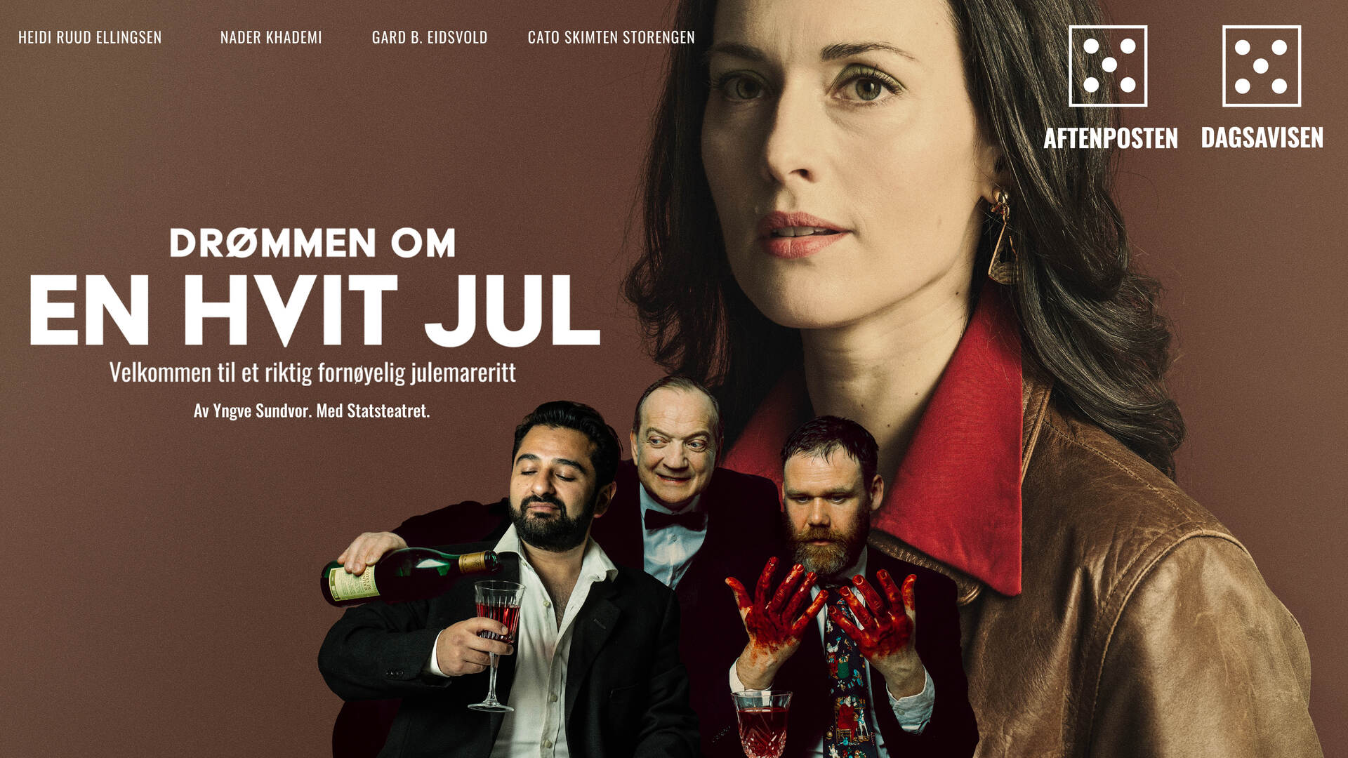 En kasse årgangsvin kommer på bordet. En stor kniv finner sitt offer. Løgn og sannhet skal avdekkes. Mors fortid skal belyses. Og vi skal synge gamle sanger om igjen. Det blir fest og fyrverkeri, latter og gråt, pinnekjøtt og julegran og rikelige mengder julestemning når Statsteatret ringer julen inn sammen med Riksteatret og Nationaltheatret.